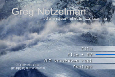 VFX Breakdown 05 > 1:18 , 8mb Montage 05 > with credits 2:52 , 29mb Please contact me if you would like me to send you a DVD. |